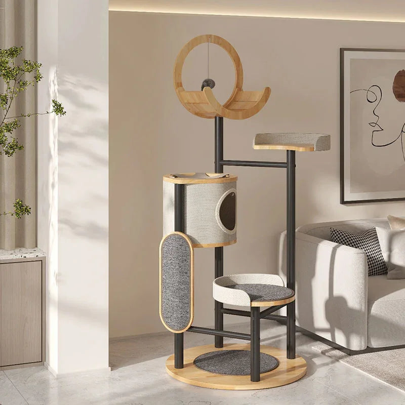 The Artistic Haven Luxury Iron Cat Tree is not just a playground—it is luxury cat furniture that beautifully blends the warmth of solid wood with the sleekness of iron art. Its multi-layered structure features ample cat platform space, offering your feline both fun and comfort, while serving as a stylish statement piece that elevates your home decor.