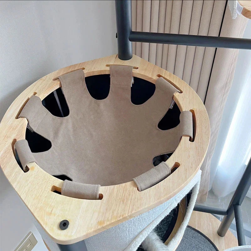 Featuring removable scratch pads, climbing mats, and a hammock, it’s designed for easy cleaning and replacement, keeping maintenance a breeze. The reinforced thick wooden base and precision steel pillar structure ensure unshakable stability, even during the most energetic play sessions.