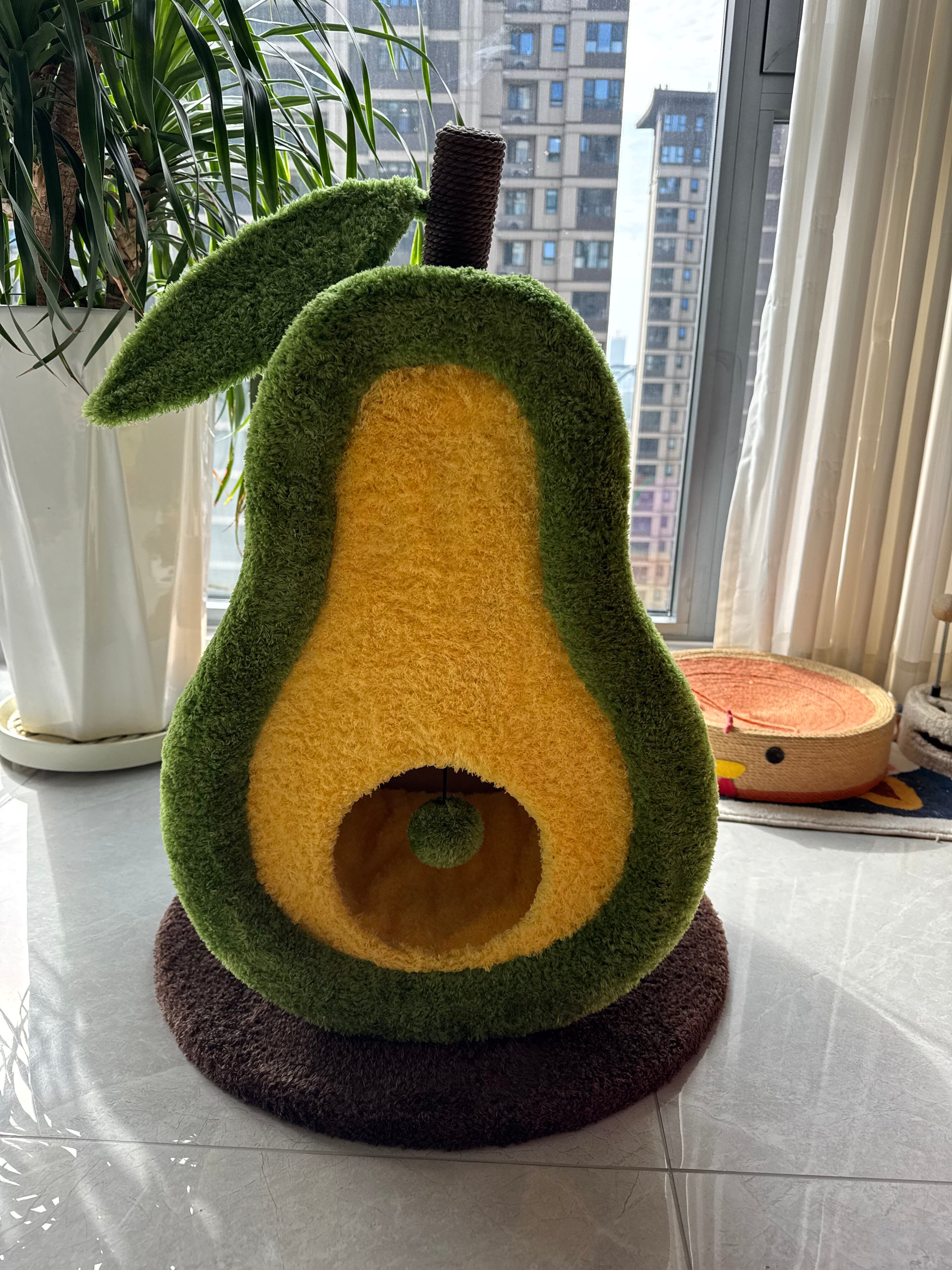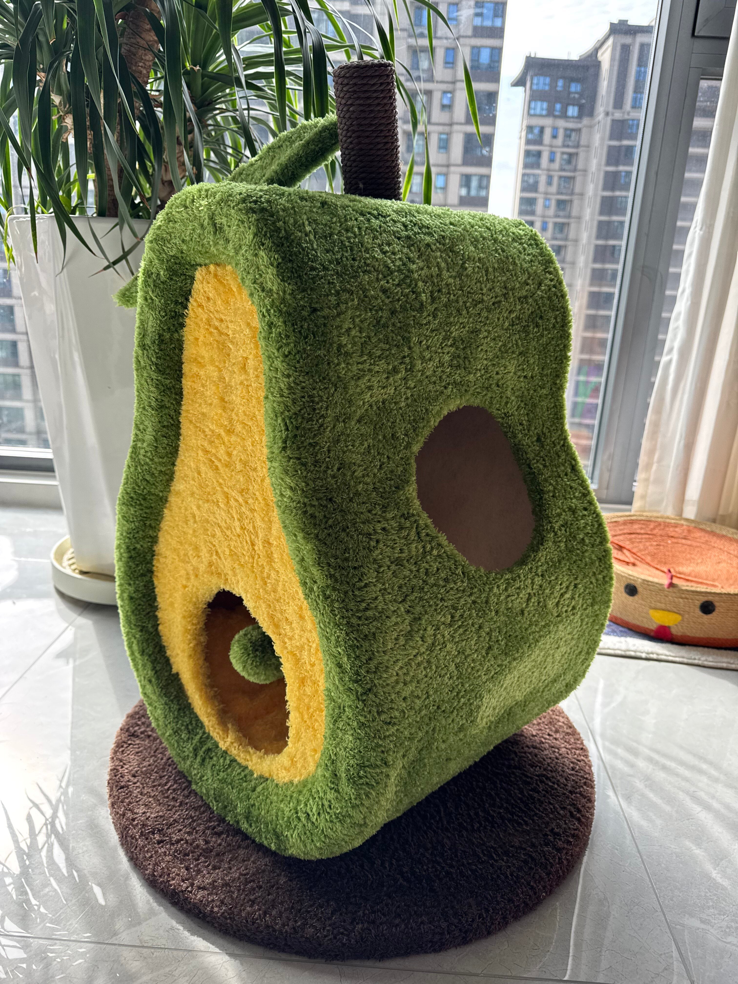 Inspired by the plump, creamy texture of avocados, this Avocado Dream Cat Scratcher Bed blends natural aesthetics with feline instincts—serving as both a playful scratching post and a warm, inviting enclosed cat bed for rest and security.