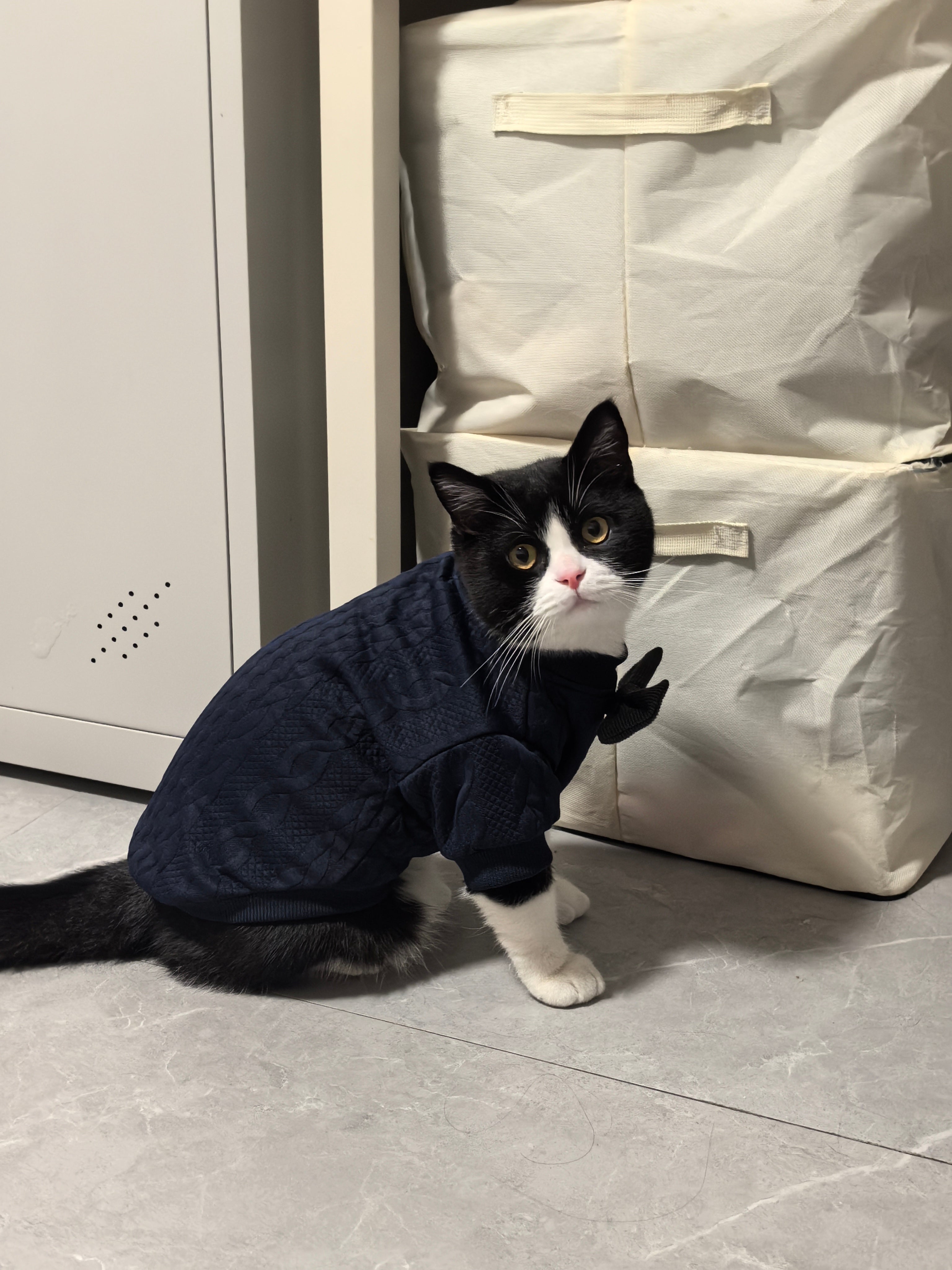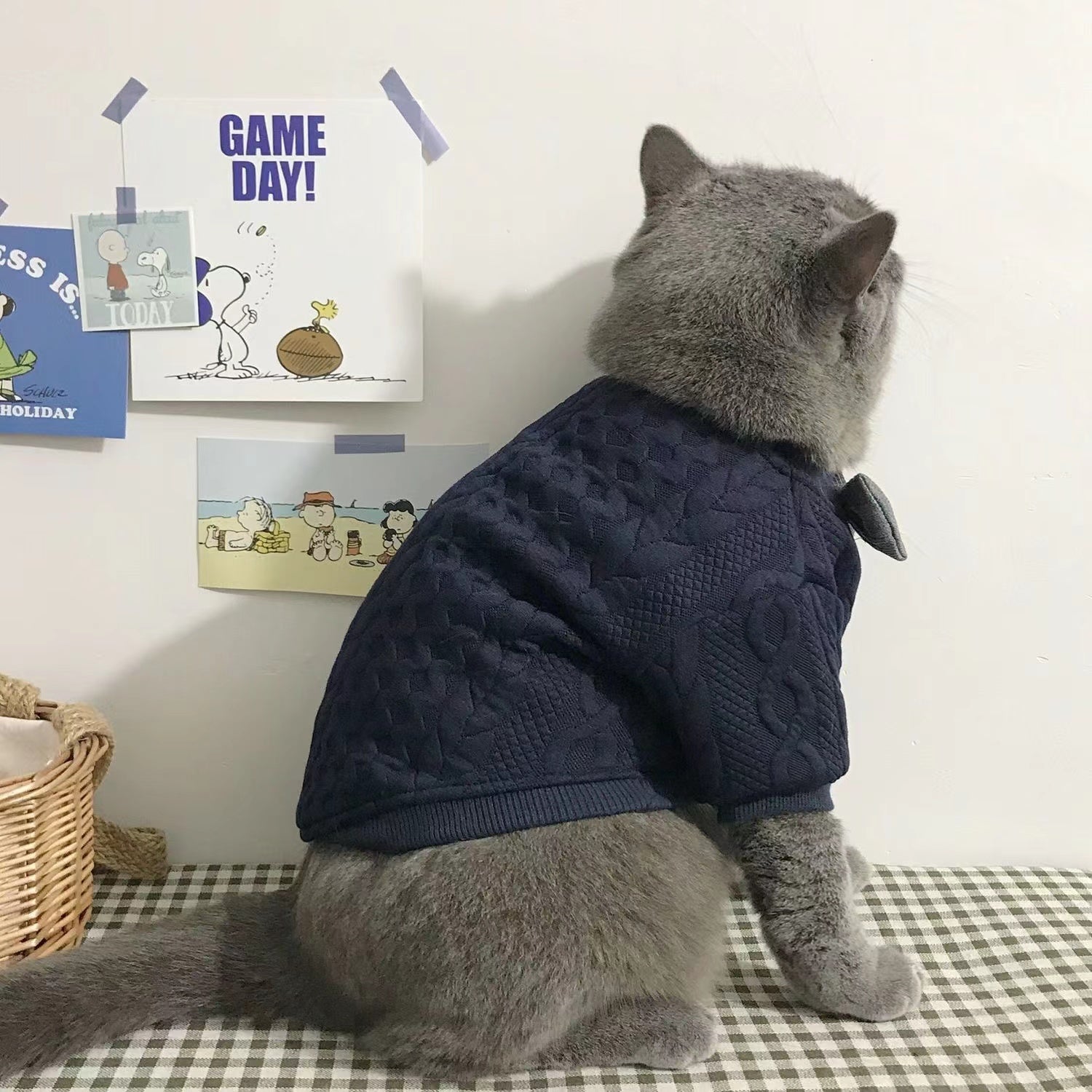 Introducing our Gentleman Paws Knitted Cat Clothes, a perfect blend of style and comfort for your feline friend in spring and autumn. Made with lightweight knitted fabric, it offers a cozy yet breathable wearing experience, ideal for mild weather. The elegant gray bowtie adds a touch of British gentleman charm, making your cat the most dapper companion at any gathering. With a classic cable-knit design and a snug fit, this sweater not only keeps your cat stylish but also provides gentle warmth. Let your cat embrace fashion and comfort all in one with this must-have spring-autumn outfit.