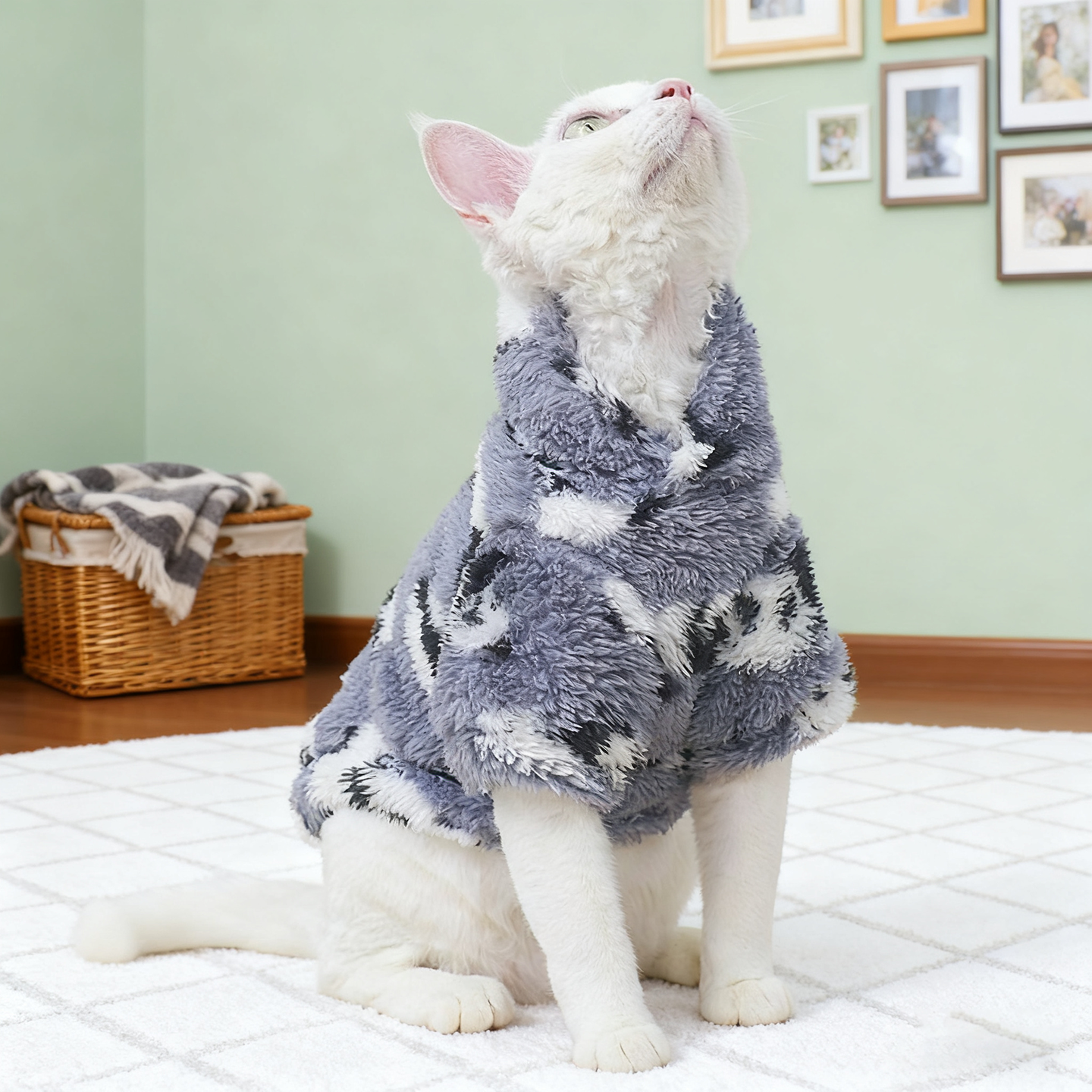 This Panda - Print Fuzzy Cat Sweater is a real eye - catcher for your cat. With a cute panda pattern in gray and white, it's not only stylish but also super soft. Made from fuzzy fabric, it offers great warmth and comfort. The design lets your cat move freely while looking adorable. It's perfect for keeping your feline friend cozy and fashionable, whether at home or during playtime.
