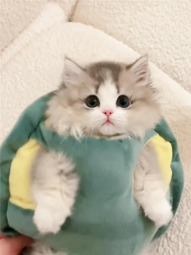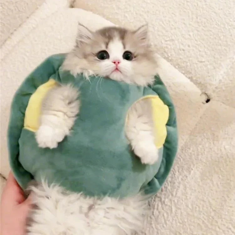 This is an exclusive turtle-shaped costume for cats. It replicates the texture of a turtle shell with soft turquoise, paired with simulated turtle patterns—turning your cat into a chubby "cute little turtle" in seconds. Made of skin-friendly and soft plush material, its loose fit suits cats’ body shapes, ensuring comfort without restriction. It’s ideal for daily home dressing and can easily capture fun, cute photos, making it a great item for pet owners to create lovely looks for their cats.